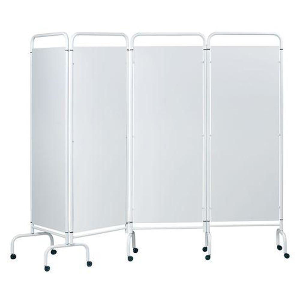 Widely used in hospitals and clinics, this screen is basically designed to create a partition or to conceal some area. The folding screen is made from stainless steel, round tubing and finished in white epoxy powder coating. Complete with 50mm castors making this a mobile unit.