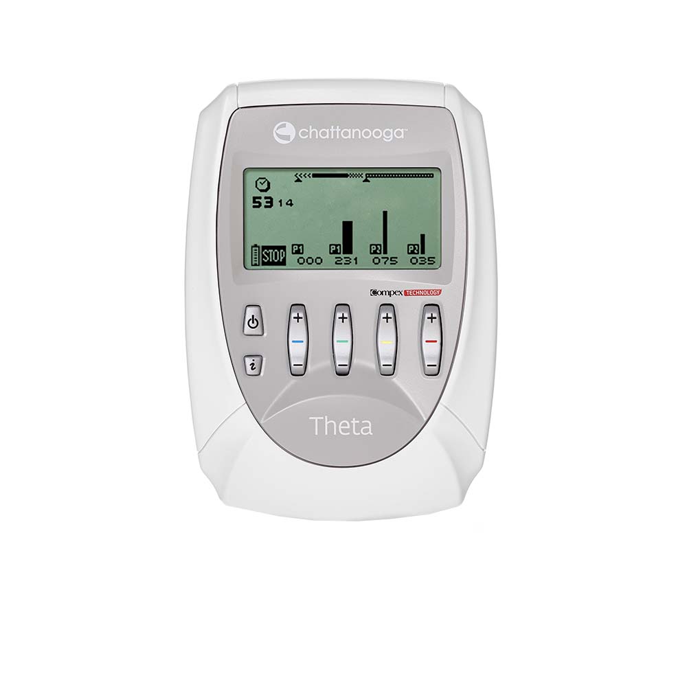 The Chattanooga Theta has four standard and four full programs, namely Rehabilitation I&II, Pain Relief I&II, Vascular, Neurologic Rehabilitation, and Conditioning I&II. Other than the Rehab Stimulator, the Theta Stimulator has much more possibilities. It also comes with 2 Mi-cables, which makes it suitable for using Muscle Intelligence Technology. The Chattanooga Theta has four channels. It is possible to choose one program for all four of them, but you can also choose to play one program on the first two channels and select another one for channels three and four. This way it is possible to train multiple body parts at once. The device monitors the session time and automatically goes to the next stage when necessary.