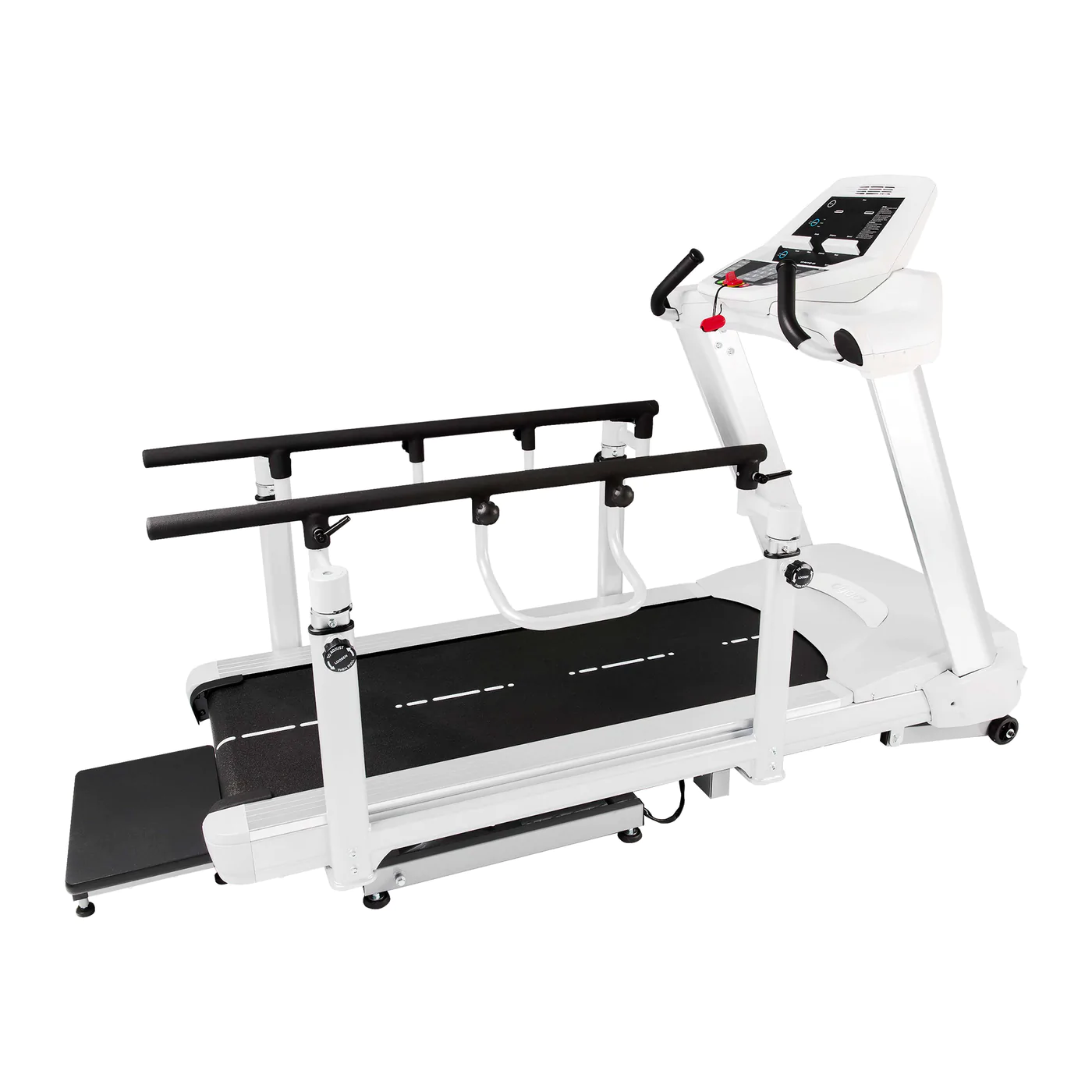 With two lift motors - one in front and the other at the back - clinicians can create uphill and downhill walking for patients. An overhead harness can be used for patients for less strenuous unweighted exercises. This type of exercise allows improved lower-body movement training without the patient bearing his or her whole body weight on the treadmill. The deck can be elevated to accommodate unweighted exercises.