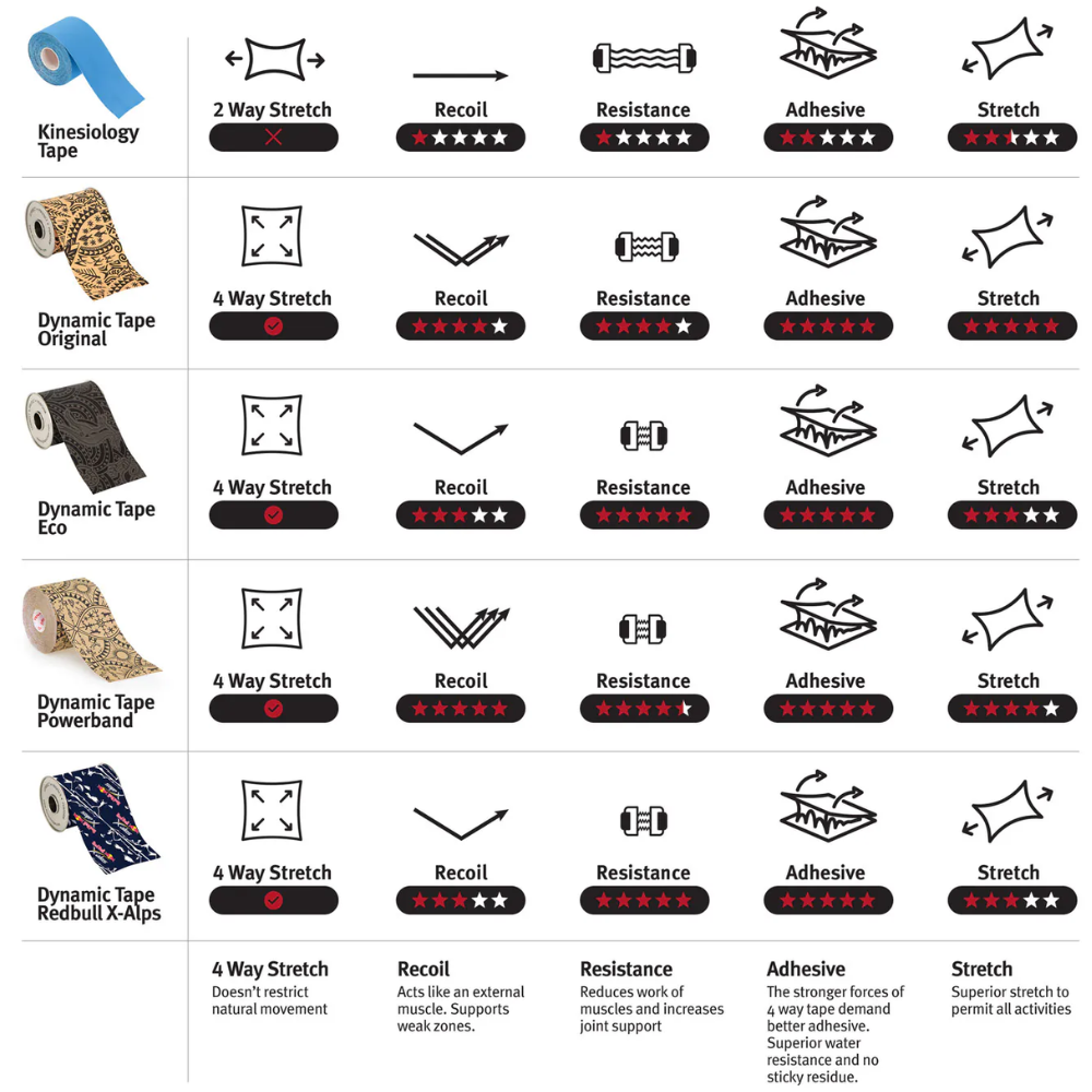 The differences between Kinesiology tape and Dynamic Tape: