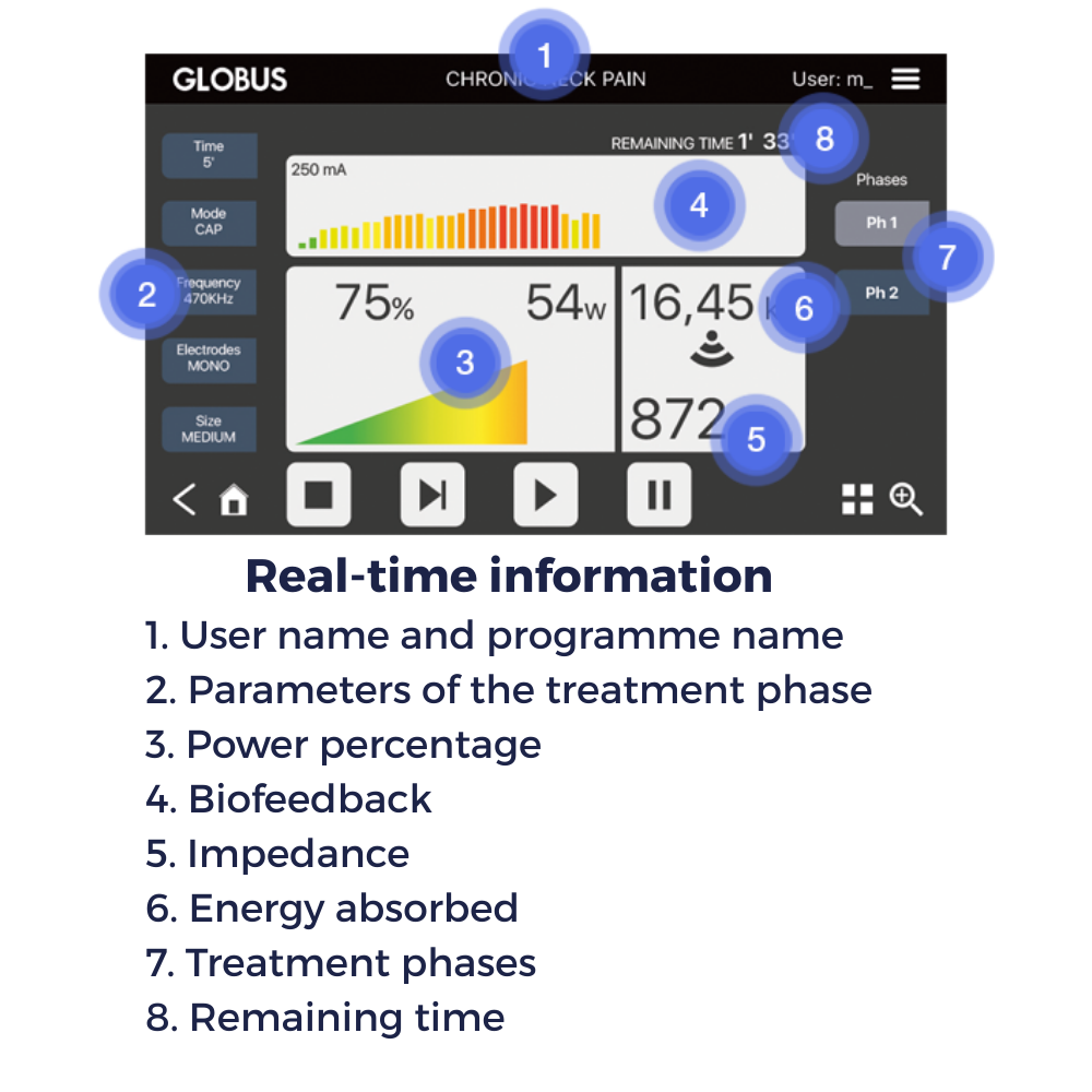 • Customised therapy delivery using pre-set and manual protocols.