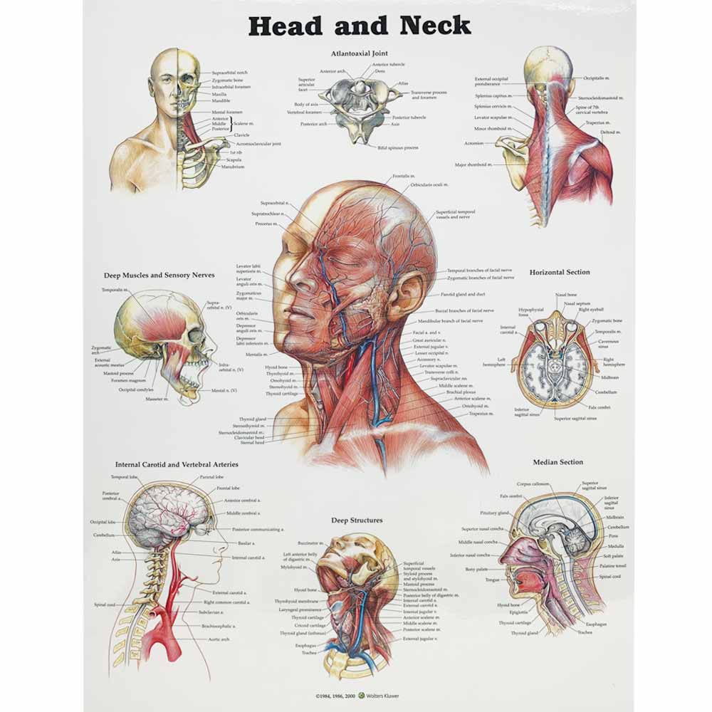 This Head and Neck poster shows the detailed anatomy of the human head and neck.