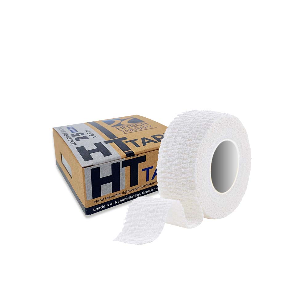 HT Light Rip EAB is a hand-tearable light elastic adhesive bandage. Light EAB marries the comfort and flexibility of a cohesive bandage with the sticking power of an adhesive bandage to create a versatile medical tape ideal for sports strapping. HT Light Rip EAB is a 100% cotton stretch tape made from open-weave cotton with a strong adhesive. Made with dry natural latex and a hypoallergenic adhesive.  The tape has a computerised unwind design, meaning it comes away from the roll easily and unwinds to the core. HT Light Rip EAB is tearable by hand and gives a high level of compression, conforming and adhering to any body part.