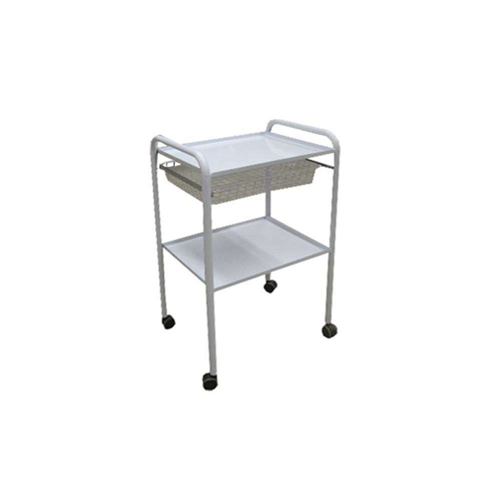 This 2 tier storage trolley comes with a wire mesh basket that helps for storing and organizing your items in your practice trimly. The 2 Tier Trolley with basket comes with an industrial and concise design and satisfied storage capabilities, this trolley will become an integral part of your practice. The 2 open large shelves are advantageous to ventilate and easily cleaning. The metal frame is tightly welded for durability and stability with a white powder coating. The 2 tier trolley has 4 wheels at the bottom that make it convenient for you to move the trolley anywhere smoothly.