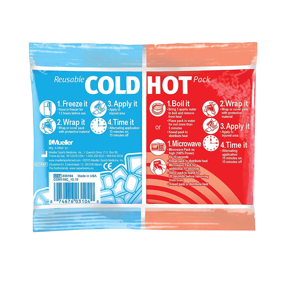 The Mueller Reusable Hot/Cold Pack is a versatile, non-toxic pack that is ideal for applying cold therapy or heat therapy and is recommended for the treatment of minor scrapes and bruises, muscle aches and sprains, headaches, toothaches, minor burns and insect bites. The pack remains flexible to conform to your body during use, and the economical, reusable pack provides long-lasting heat or cold.