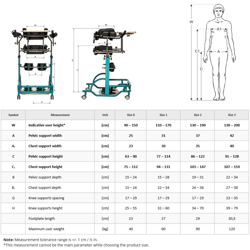 Thanks to the ergonomic, and adjustable knee supports, the product is perfect in rehabilitation centres and neurological wards where even the user in a coma can be subject to the process of upright standing.