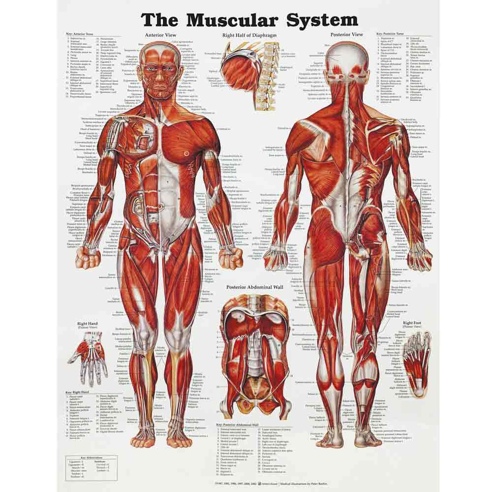 The Muscular System Anatomical Chart is perfect for learning or explaining the anatomy of muscles. An ideal muscle anatomy poster for students and health professionals alike! Peter Bachin designed the famous medical image on which this muscle chart is based in 1947. The fine detail and vivid colour make the muscular system poster ideal for clinic and hospital walls. The laminated chart offers flexibility, durability, and a write-on/wipe-off surface.